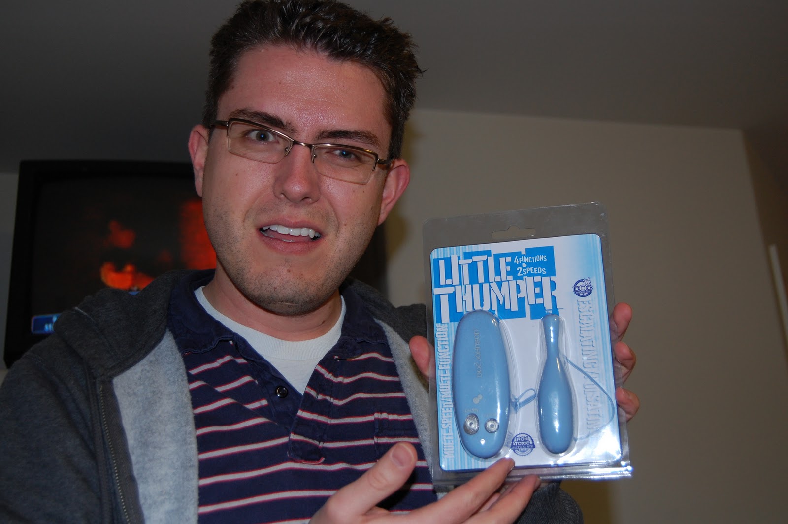 put a vibrator in the mail and send it to somebody. Yet, here I am, in a picture, holding a vibrator, and here I am in text saying the words “if you comment on this post, you very well might win this blue vibrator called the Little Thumper.”