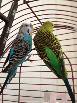The blue parakeet is a boy. You can tell because the area above his beak is blue. If it's pink, you have a girl. Really.