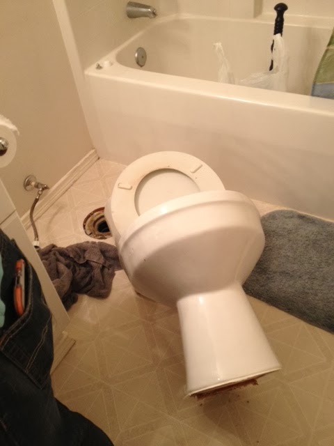 His first order of business? Removing the toilet from the floor. I didn’t even know this was a thing that could happen.