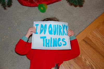 It was difficult to narrow in on just one quirky thing that Tessa has done this year, so we decided to broaden it out and make a list of various items. Our Tessa–bless her heart–is a very strange duck. A strange duck that we love with all our hearts. For example, she has made up her own theme song which she sings upon entering the room. It’s not complex. It goes something like this: “Da doo deeeeeeeeeeeeeee–here’s TESSA!” It’s pretty funny, and she’ll do it on command, but it’s much more meaningful when she spontaneously sings her theme-song as she enters a room. We love it.