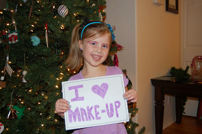 Her new obsession, though, is make-up. She wears it any chance she gets, and is constantly trying to sneak into our bedroom to put some on. I fear we may be the only household in the world where the motto “Kindergarteners don’t wear make-up!” is repeated every morning before school.